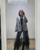 Blazer dal taglio over senza spalline con fodera interna e chiusura con due bottoni. Lunghezza medio/lunga con applicazione tulle nero lungo fino alle caviglie. Taglia unica adatto a vestire fino a una taglia 46/48. Super fashion adatto per look cool.
