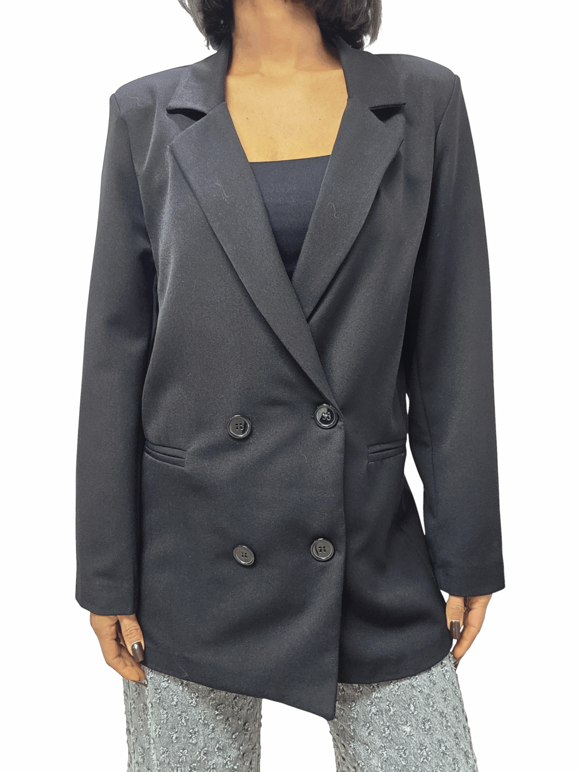 Blazer modello over con chiusura doppio petto. Leggere spalline e fodera interna . Lunghezza medio/lunga e vestibilità regolare. Brand Kontatto, made in Italy. Un vero must have da avere sempre nell’armadio.