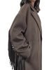 Cappotto con chiusura doppio petto con clip. Lunghezza media con cintura e frange nella parte posteriore della schiena e delle maniche . Vestibilità comoda con fodera interna. Brand Please, made in Italy. Super trendy perfetto per l’inverno.
