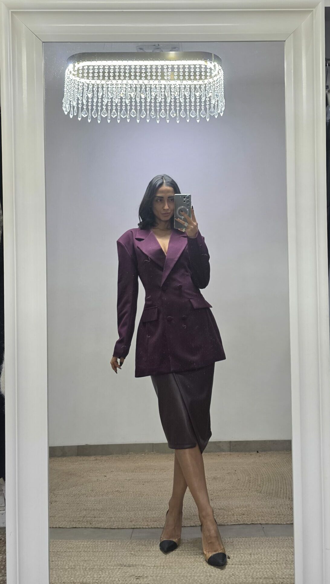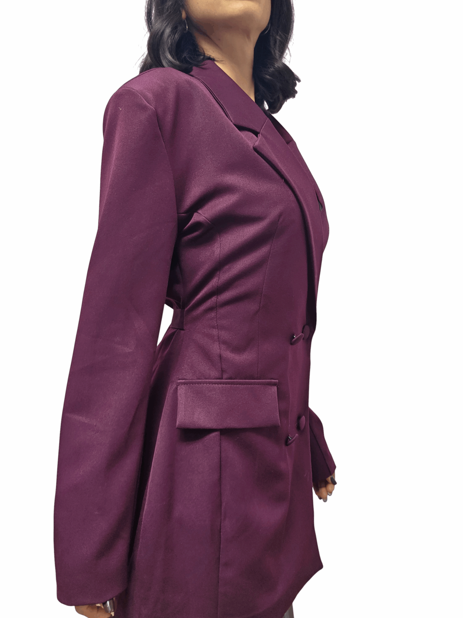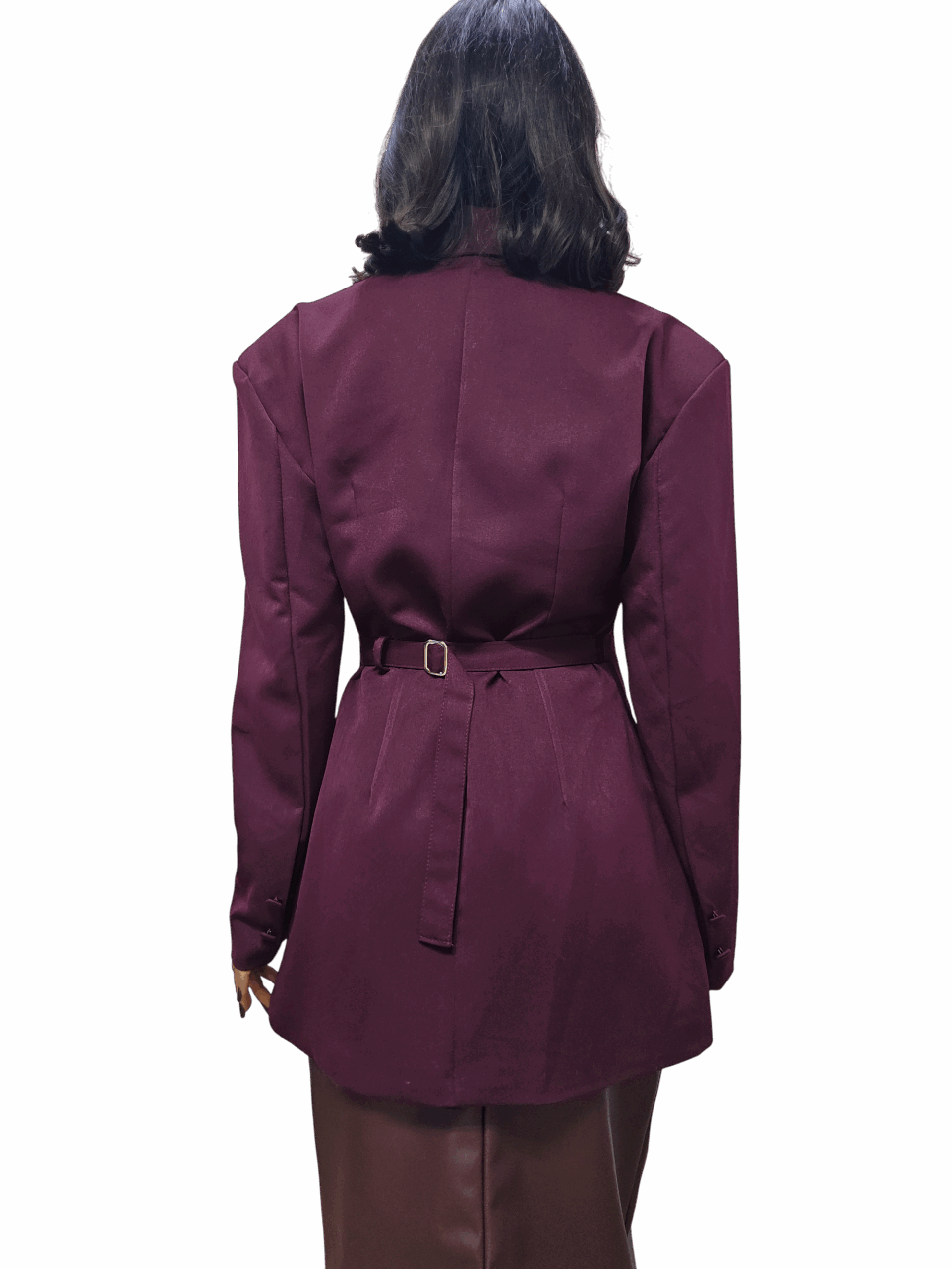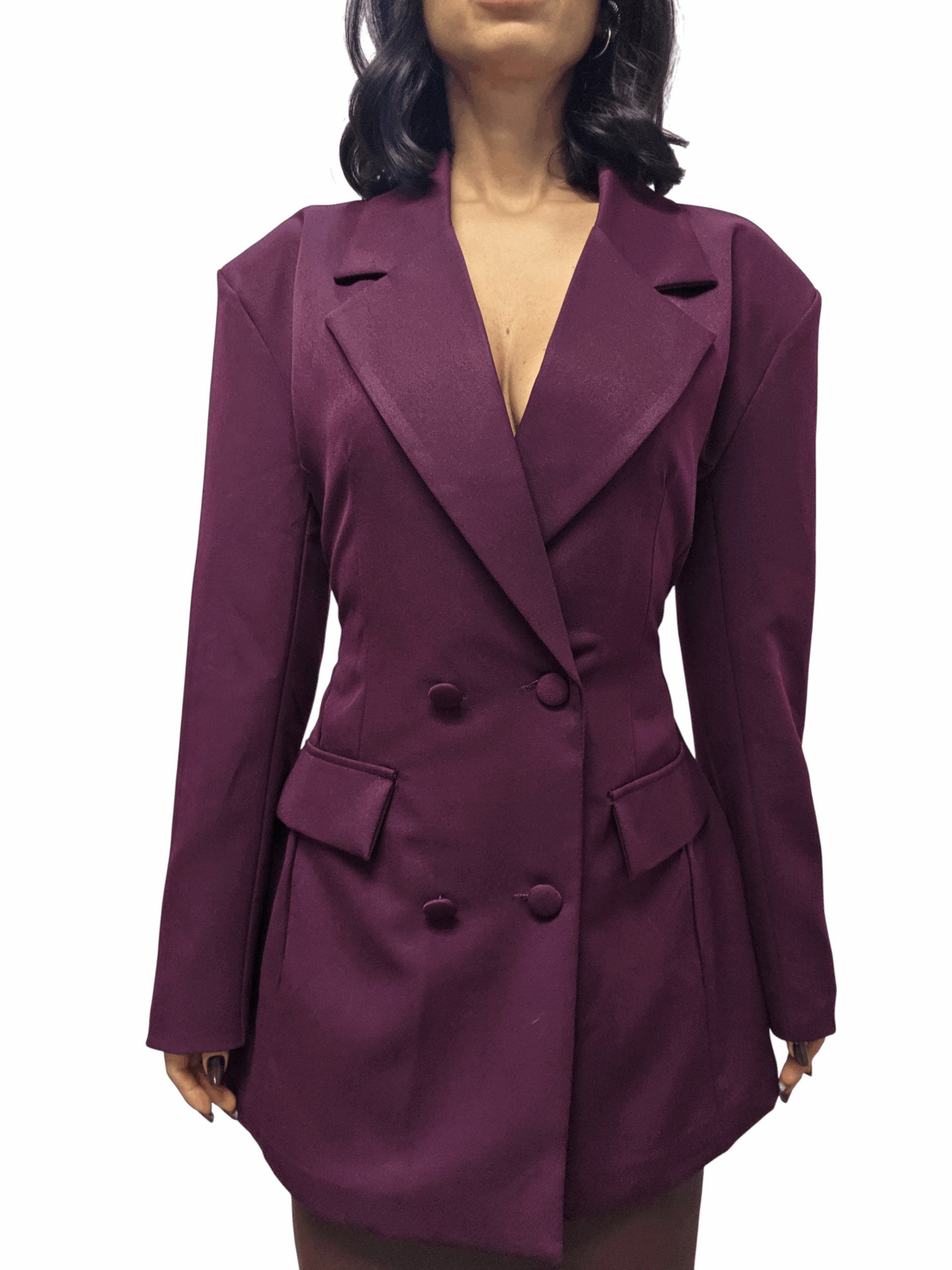 Maxi blazer doppio petto con spalline. Vestibilità regolare avvitato con cinturino dietro la schiena per regolare la vita. Lunghezza medio/lunga. Taglia unica adatta a vestire fino a una taglia 46. Tessuto non elasticizzato, fodera interna. Di gran tendenza perfetto per look cool e chic.