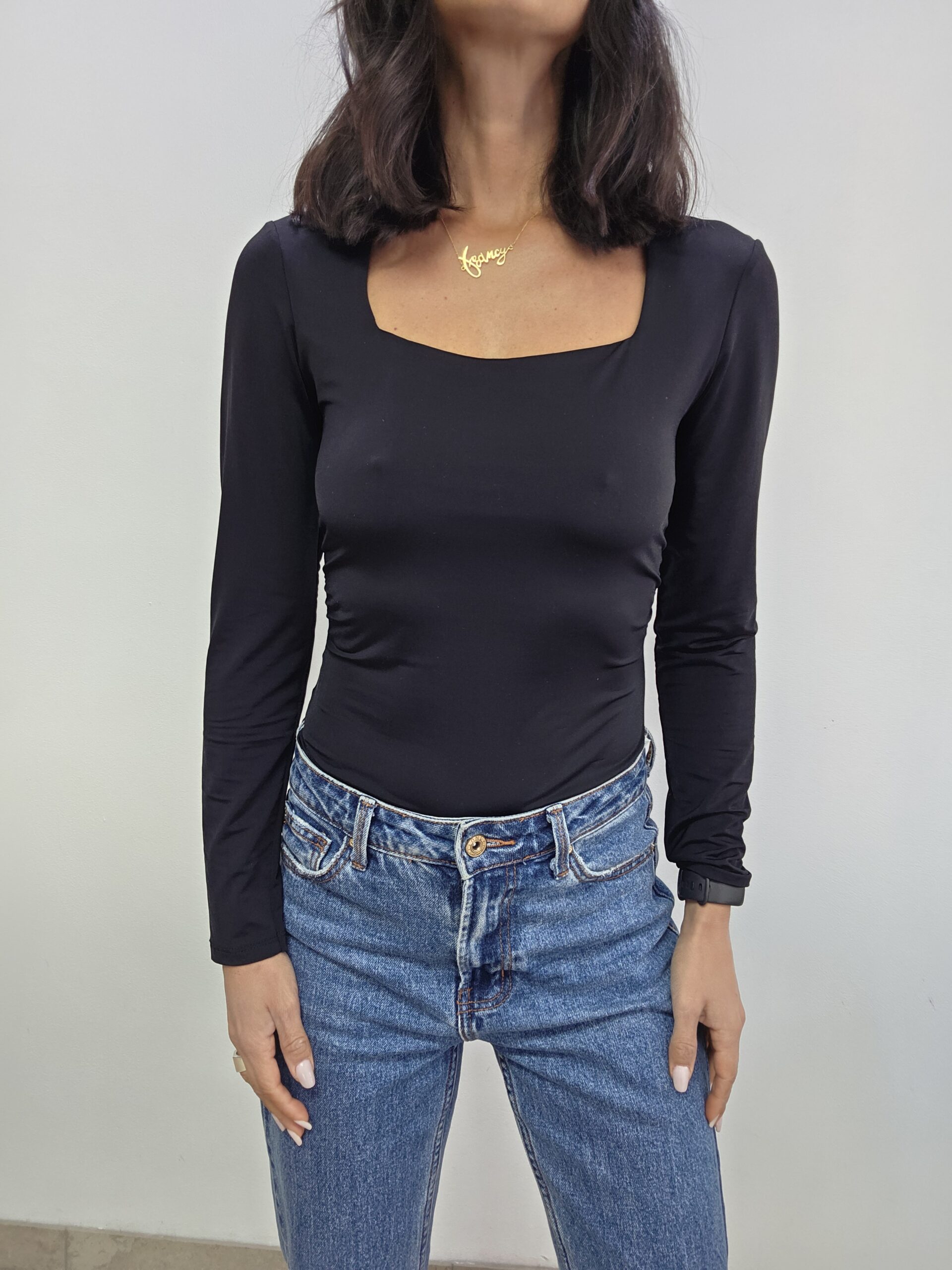 Body in lycra con scollatura quadrata . Tessuto elasticizzato con vestibilità aderente . Manica lunga , con chiusura classica con gancetti. Un bestseller adatto a tutte le stagioni