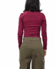 Body a costine con bottoncini, girocollo e fori per pollice sui polsi. Vestibilità aderente , taglia unica adatto a vestire fino a una taglia 48.