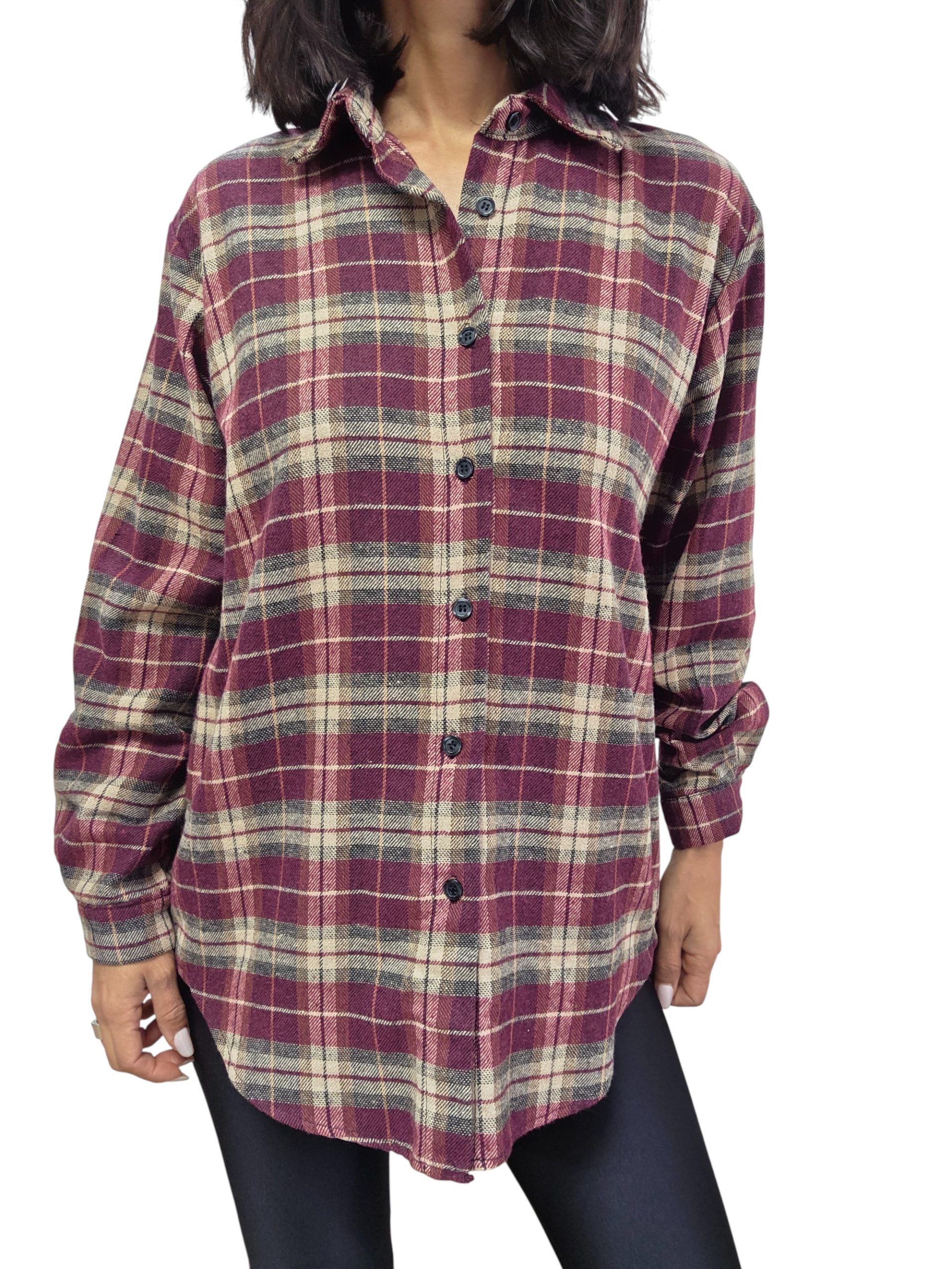 Maxi camicia effetto flanella con stampa quadri. Vestibilità over con tessuto non elasticizzato. Chiusura classica con bottoni , leggermente più lunga dietro. Di super tendenza perfetta per look cool e sportivi.