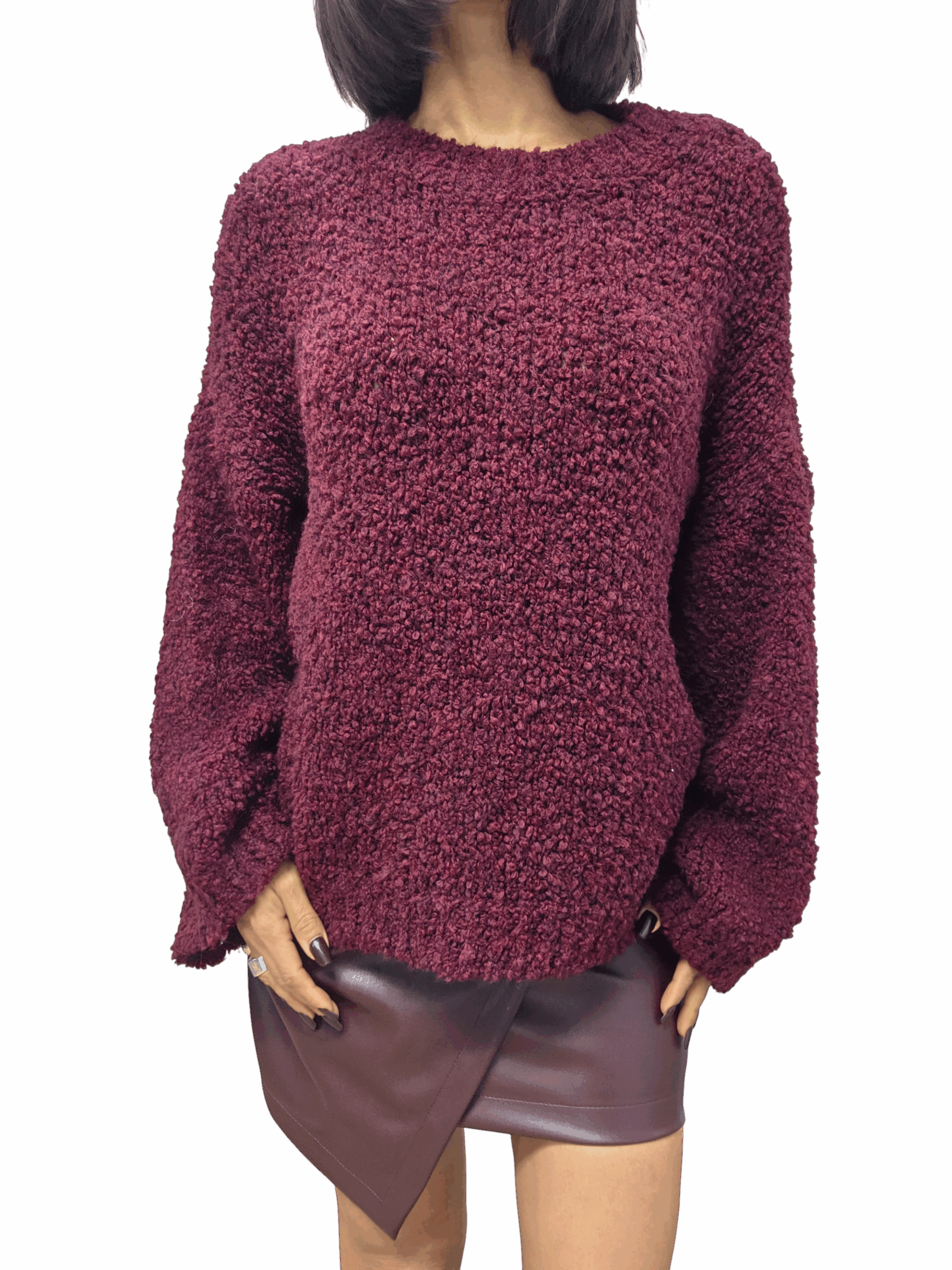 Pull in bouclè con vestibilità over. Maniche larghe a palloncino e lunghezza media . Taglia unica adatto a vestire fino a una taglia 48. Tessuto caldo , morbido e avvolgente. Perfetto per i nostri look invernali.