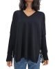 Pull con scollatura a V con frange sulle maniche. Vestibilità comoda con spacchetti laterali. Taglia unica adatta a vestire fino a una taglia 48. Brand Kontatto, made in Italy. Caldo e trendy, perfetto per i look invernali.
