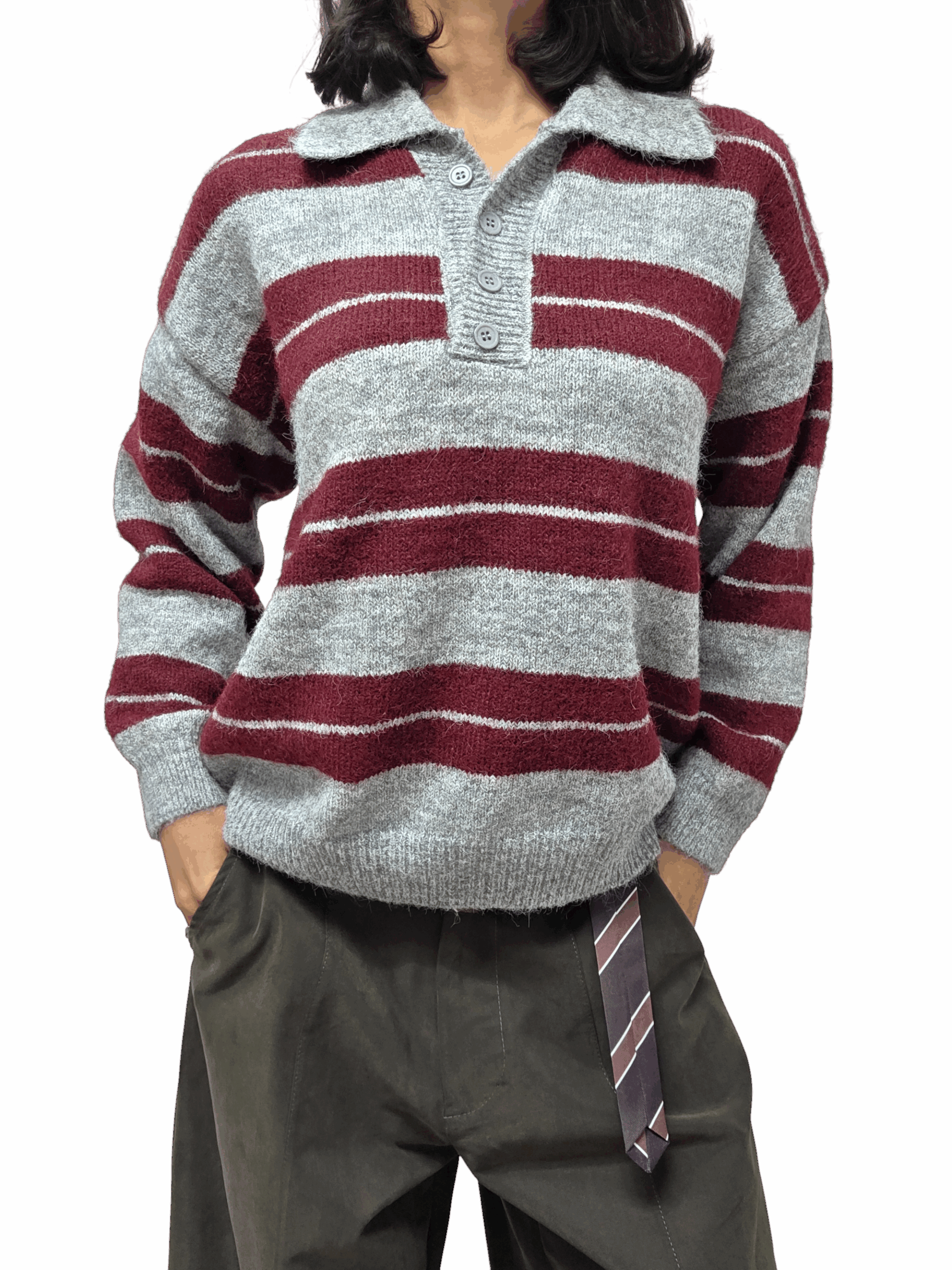 Pull con colletto e bottoncini dalla vestibilità comoda e lunghezza media. Taglia unica adatta a vestire fino a una taglia 48. Comodo e caldo di gran tendenza.