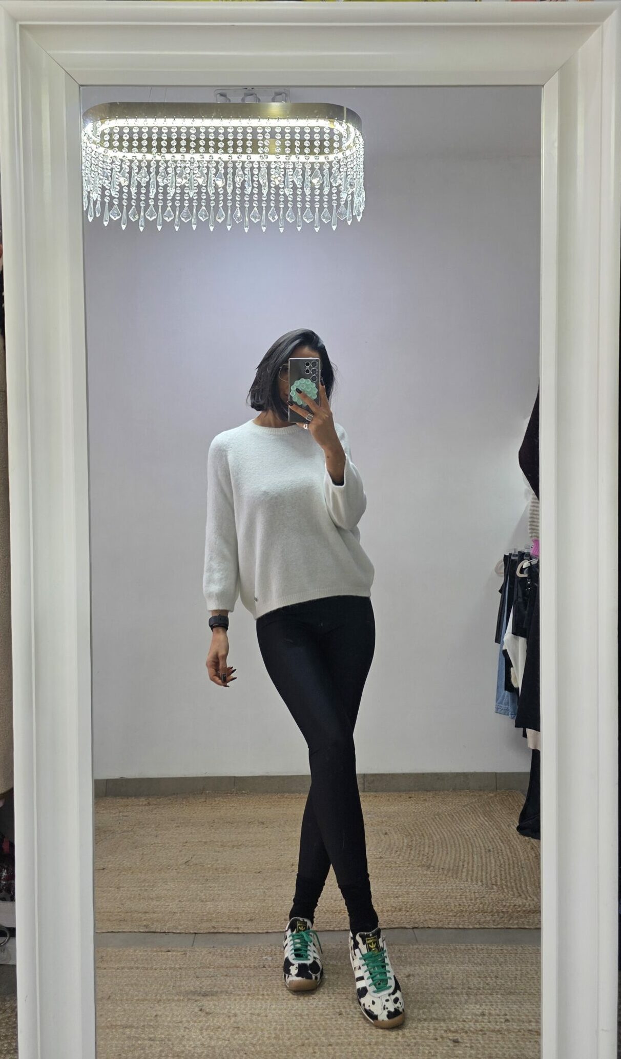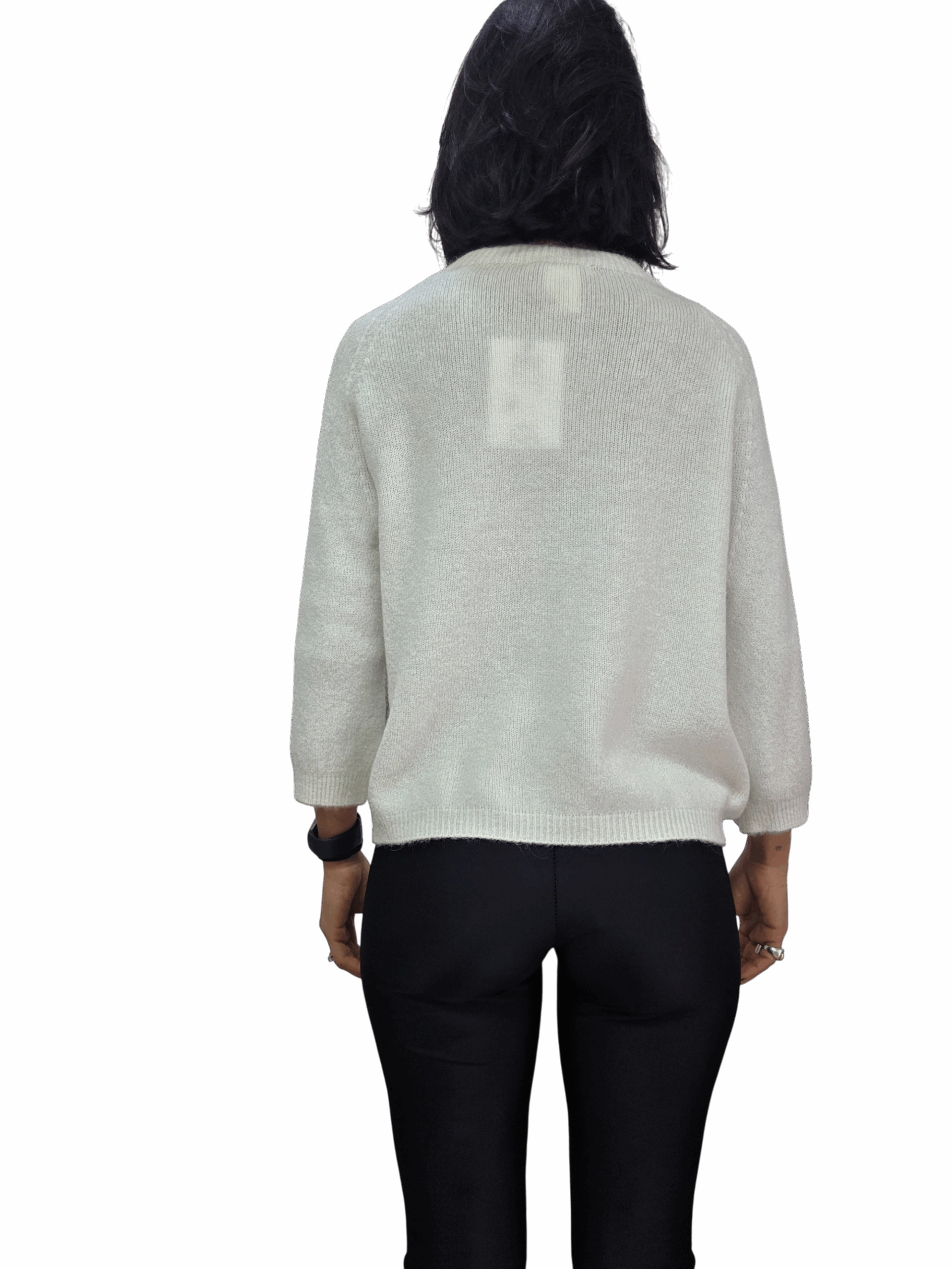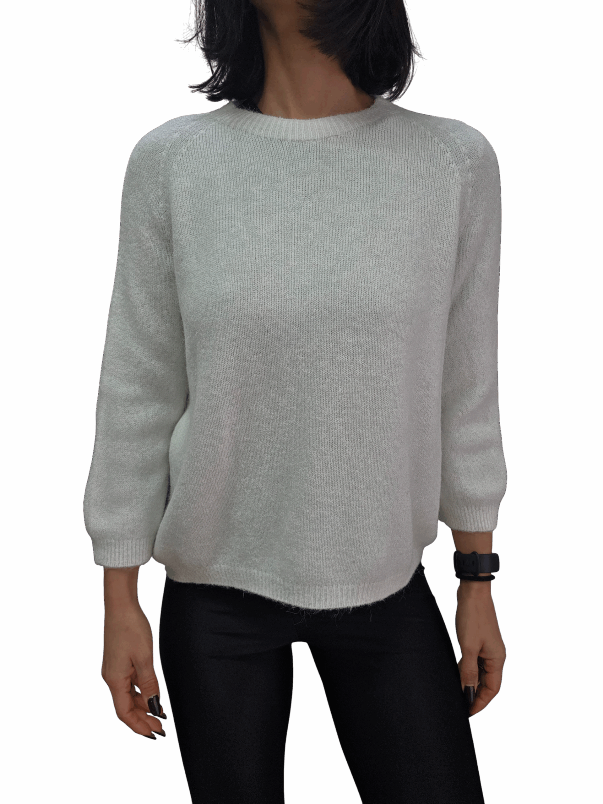 Pull girocollo con vestibilità regolare. Manica leggermente 3/4 con vestibilità comoda. Taglia unica adatta a vestire fino a una taglia 48. Tessuto morbido, caldo e avvolgente . Brand Please, made in Italy. Un vero basic perfetto per look invernali cadsal/chic.