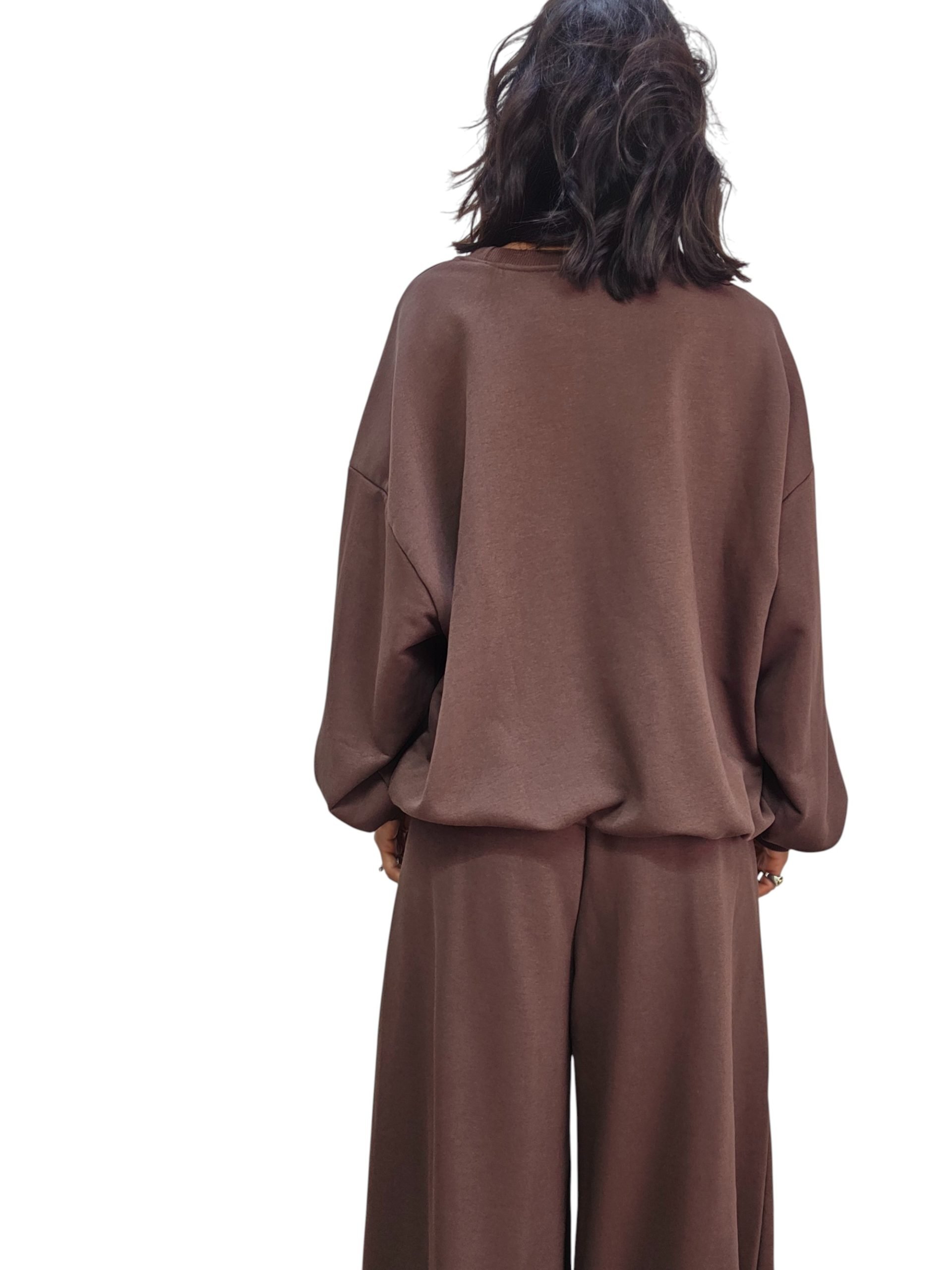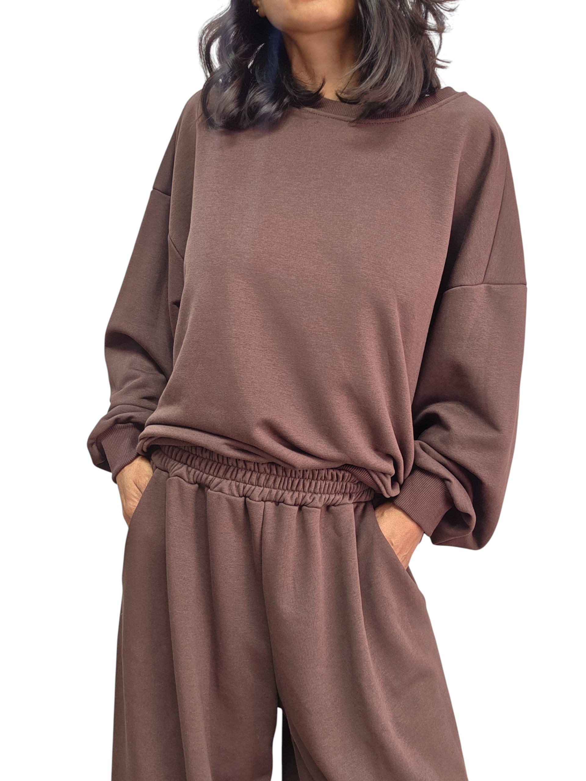 Felpa in cotone non felpata, girocollo con manica lunga . Vestibilità over con lunghezza media. Taglia unica adatta a vestire fino a una taglia 48. Un capo basic adatto a look sportivi.