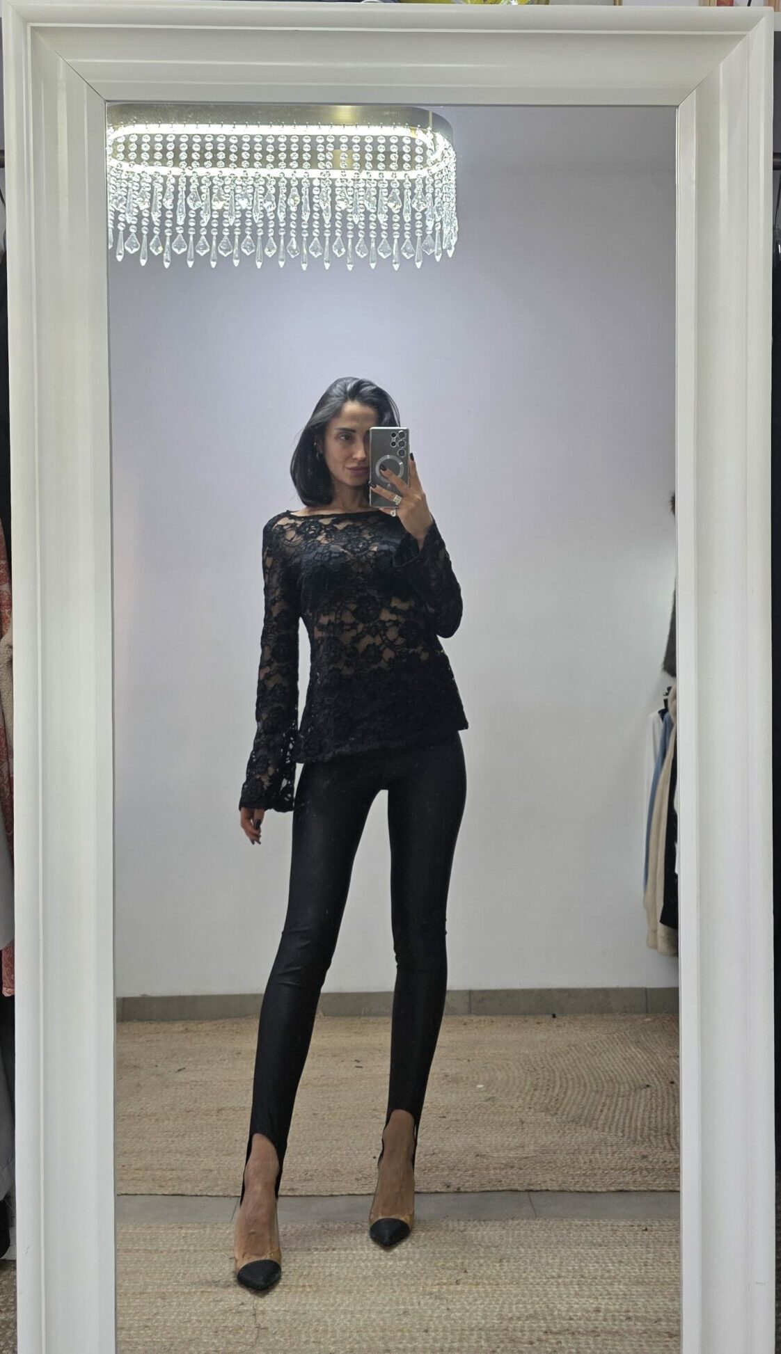 Leggings in lycra lucida vita alta con staffa . Tessuto completamente elasticizzato , vestibilità aderente. Taglia unica adatta a vestire fino a una taglia 48. Capo comodo e versatile a avere sempre nell’armadio!
