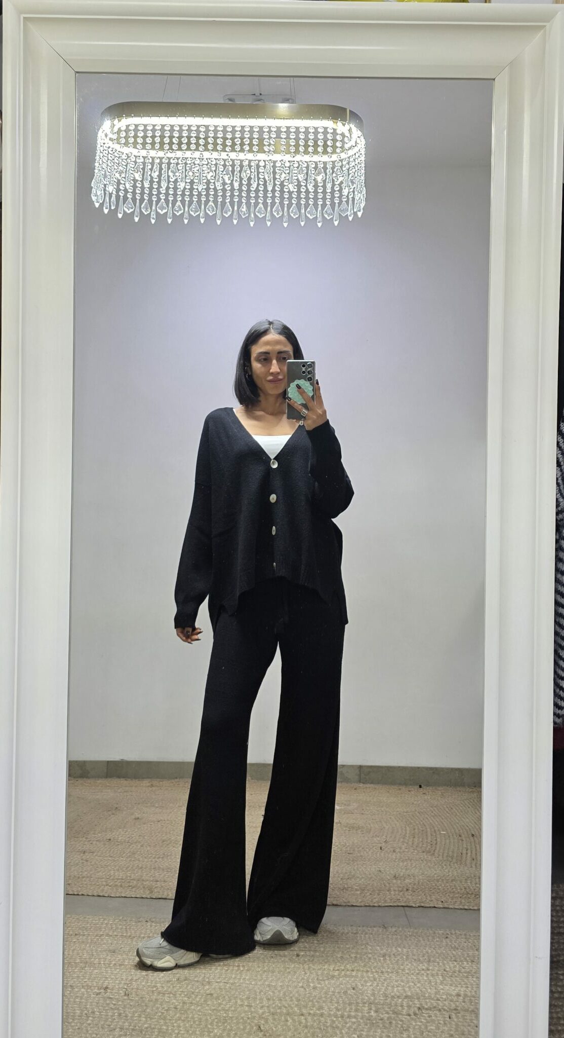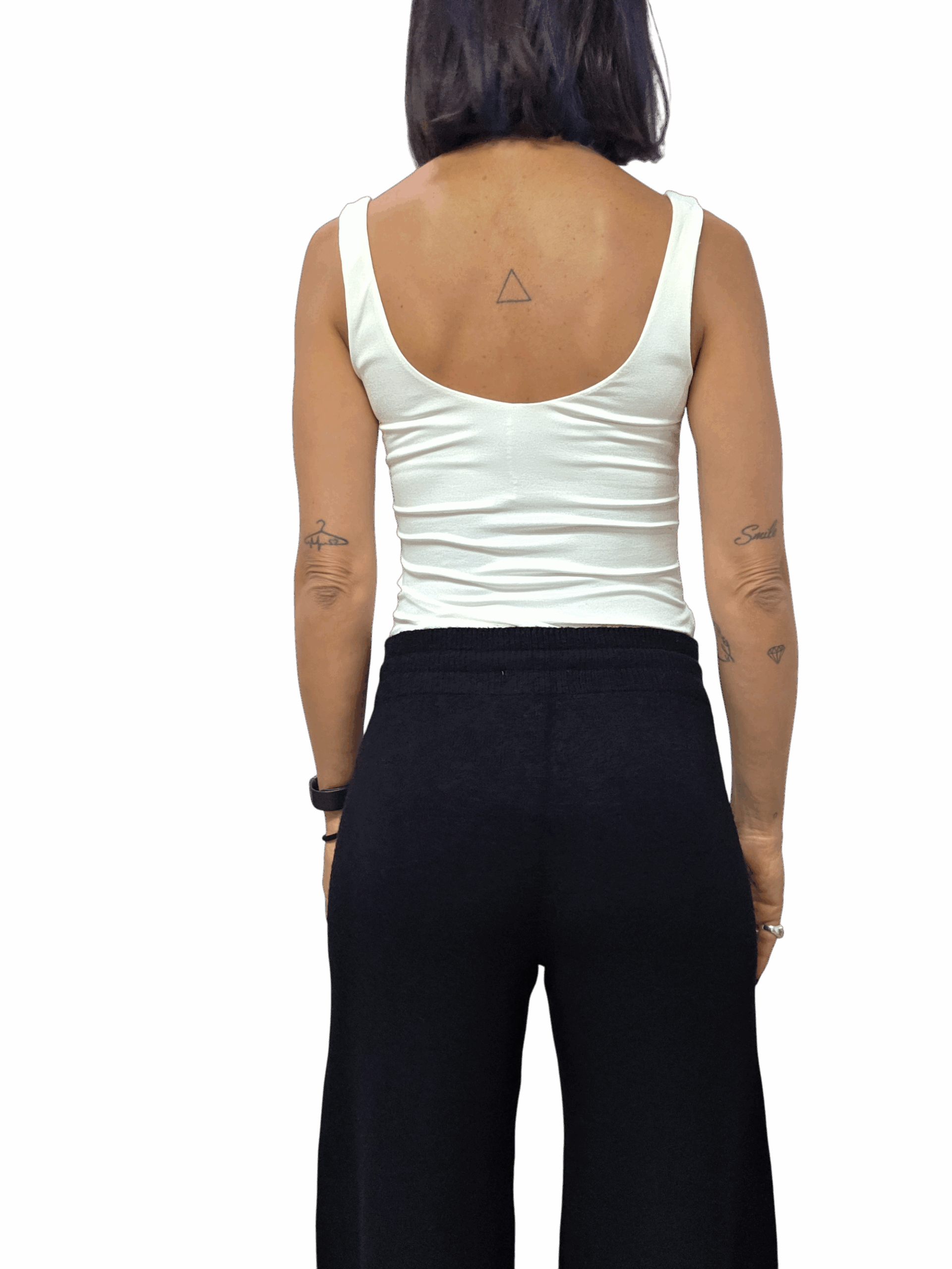 Pantalone modello palazzo con elastico e laccetto in vita. Tessuto in viscosa elasticizzato comodo e confortevole. Taglia unica adatto a vestire fino a una taglia 46/48. Brand Kontatto, made in Italy.Pantalone adatto a look casual e casual/chic.