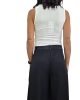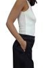 Pantalone modello palazzo vita alta con chiusura classica con zip e bottone. Vita con passanti rivestita in raso e banda laterale sempre con dettaglio raso.