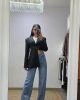 Blazer asimmetrico strutturato con spalline. Chiusura con un bottone . Più lungo da un lato e cropped dall’altro. Fodera interna .Vestibilità regolare, con tessuto non elasticizzato. Blazer alla moda adatto a look cool.