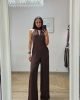 Tuta intera con vestibilità comoda, parte del pantalone modello palazzo. Senza chiusure con scollatura all’americana e allacciatura dietro il collo con ficco. Tasche. Brand Please, made in Italy. Comoda e sofisticata adatta anche a look per cerimonie.